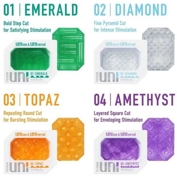 Серия мастурбаторов Tenga Uni вдохновлена драгоценными камнями и может стать настоящим сокровищем в вашей коллекции, они имеют 4 уникальных узора: