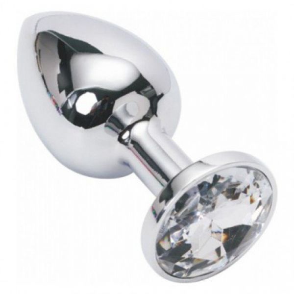 Гладкий мини-плаг с кристаллом розового цвета в основании.