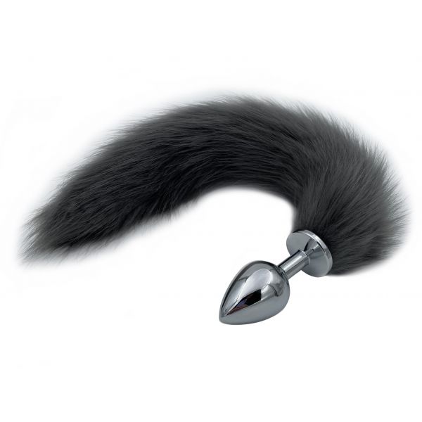 Металлическая анальная пробка L с длинным лисьим хвостиком 44 см