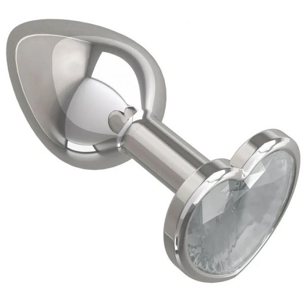 Металлическая анальная пробка с прозрачным камушком в виде сердечка S