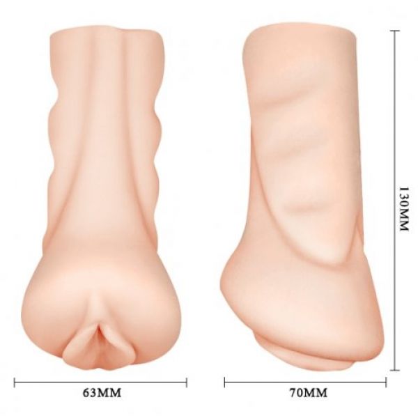 Вагина имеет натуральный телесный цвет и очень правдоподобные внутренние складки, которые приносят ощущение полноценного сексуального контакта за счет плотного облегания ствола пениса.