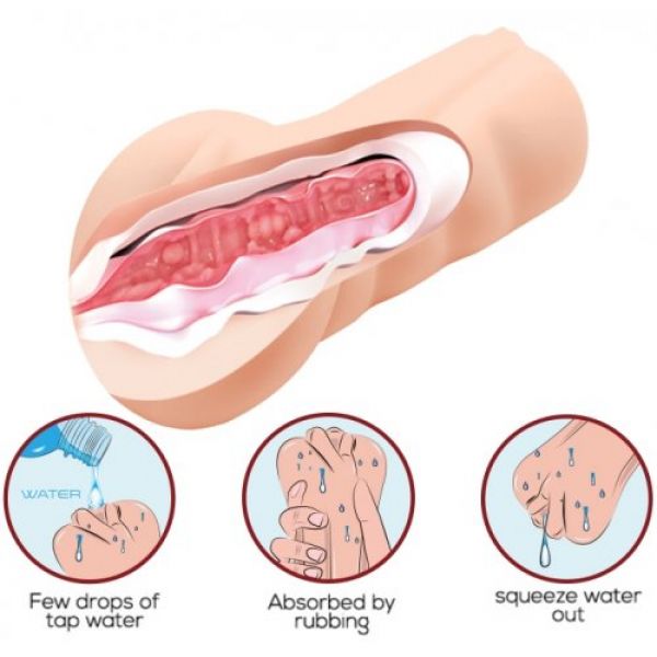Особенность игрушки заключается в том, что при добавлении нескольких капель воды в тоннель мастурбатора, материал принимает консистенцию скользящей, увлажняющей смазки.