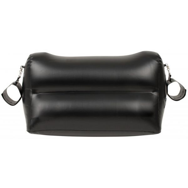 Подушка оснащена креплениями для других аксессуаров - наручников. Черные наручники с помощью карабинов крепятся к подушке, но также могут быть использованы как независимый элемент БДСМ игры.