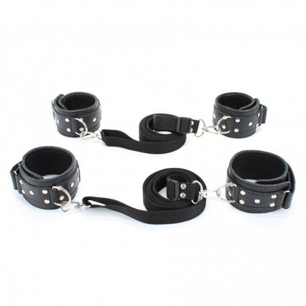 Набор из наручников и оков, выполненных из натуральной черной кожи