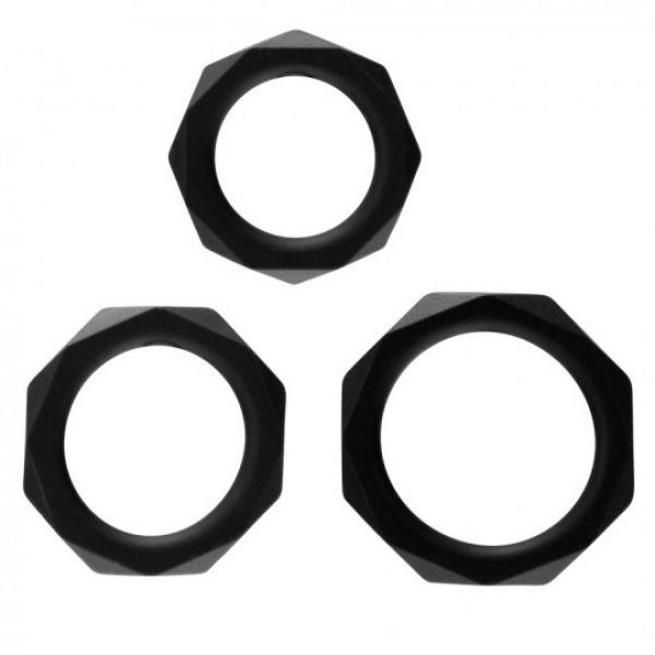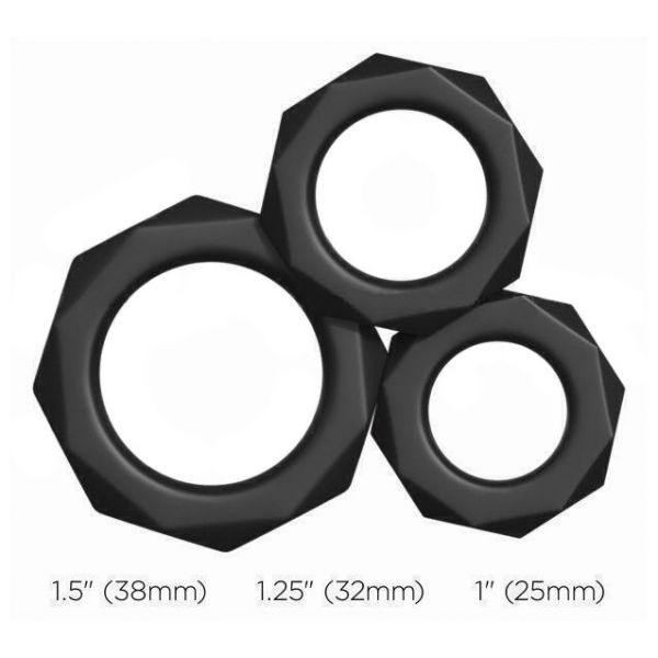 Вся прелесть такого набора в том, что Вы можете носить сразу два или три колечка: одно из которых может быть у основания пениса, а другое под мошонкой.