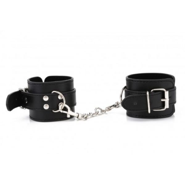 Наручники соединяются между собой цепочкой с двумя карабинами на концах. Не нарушают кровообращение, надёжно фиксируются с помощью двух ремешков. Размер универсальный.