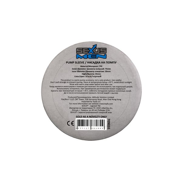 Насадка на помпу Sexus Men, TPE, чёрный, 7,5 см