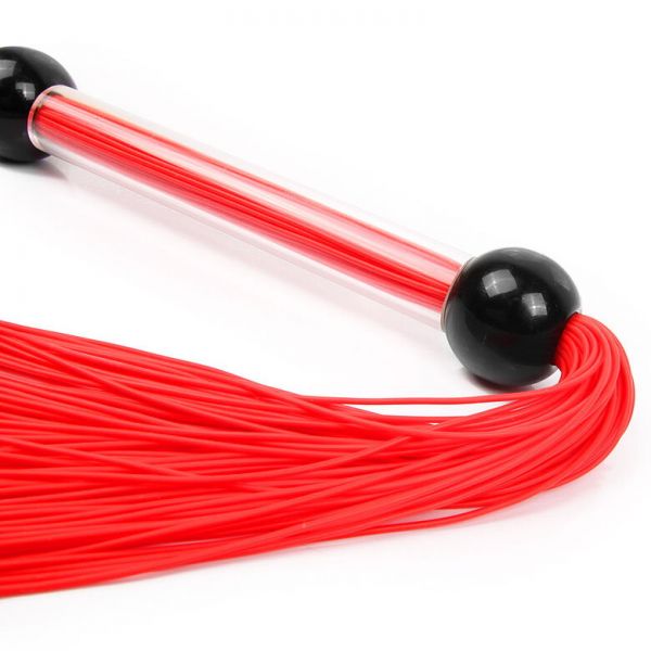 Удобная ручка позволяет крепко держать плеть в руках, а резиновые хвосты нежно обжигают даже при слабом ударе.