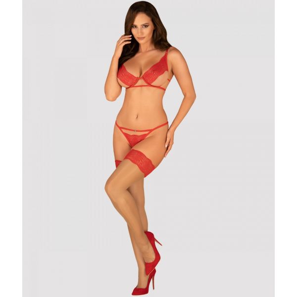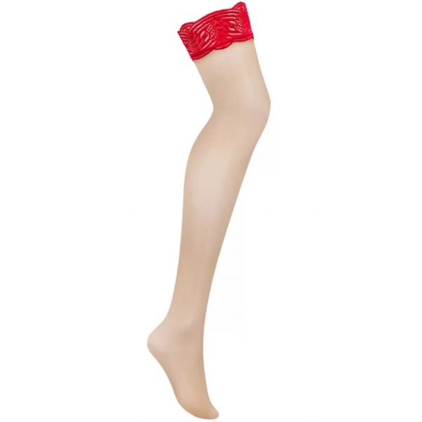 Нюдовые чулки с красной кружевной резинкой Mellania L/XL