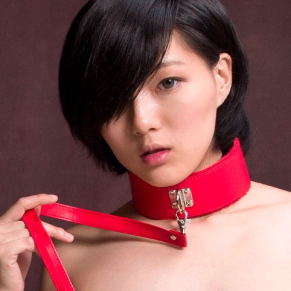 Ошейник с мехом и поводком красный