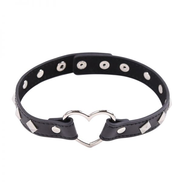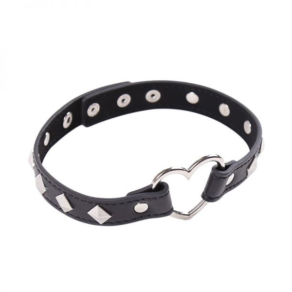 Ошейник с сердечком на заклепках в форме ромбов