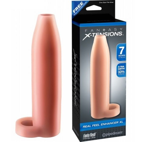 Открытая насадка на пенис Fantasy X-tensions Real Feel XL с петлей под мошонку несет в себе несколько нереальных функций, о которых мы Вам сейчас расскажем!