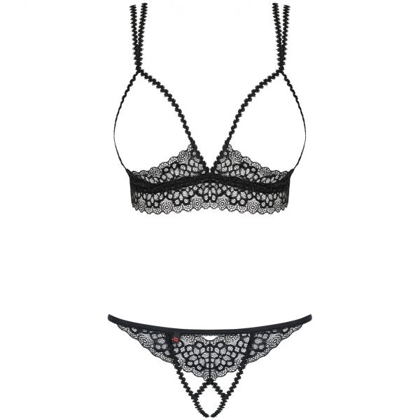 Комплект вызовет фантазии, о которых Вы никогда не мечтали. Открытый бюстгальтер и трусики раскроют все ваши достоинства и позволят любимому любоваться Вами во всей красе.