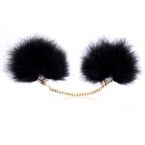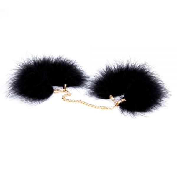 Перьевые браслеты-наручники черного цвета на золотой цепи