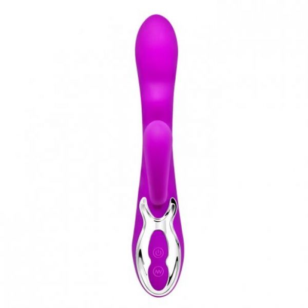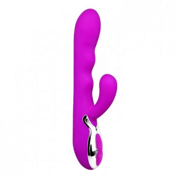 Многоскоростной перезаряжаемый вибратор пурпурного цвета. Имеет клиторальный стимулятор.