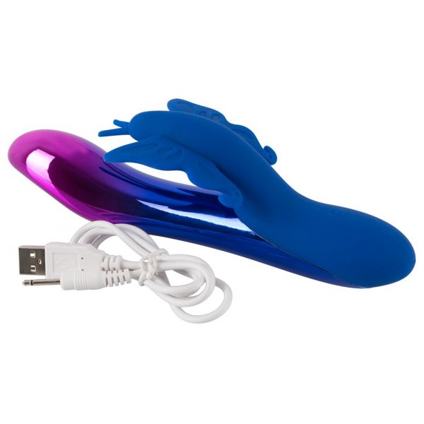 Перезаряжаемый вибратор с клиторальным стимулятором-бабочкой и подсветкой Sparkling Butterfly