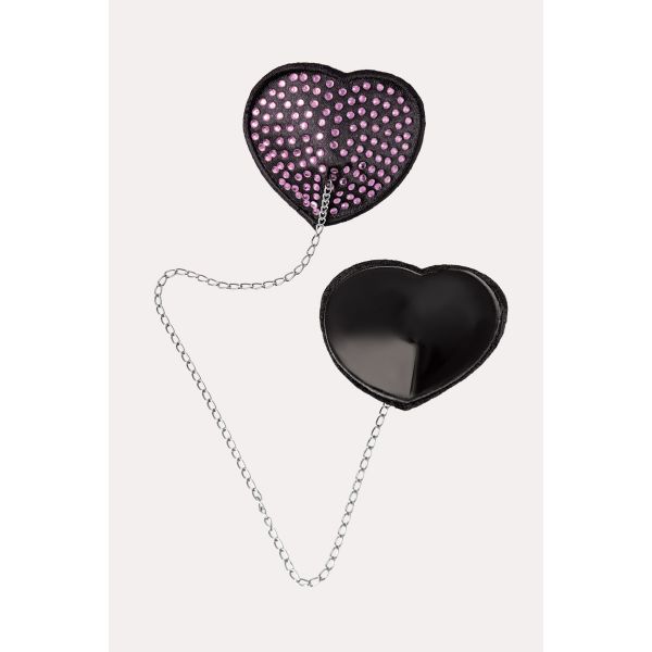 Пэстисы в форме сердец с розовыми стразами соединенные цепочкой
