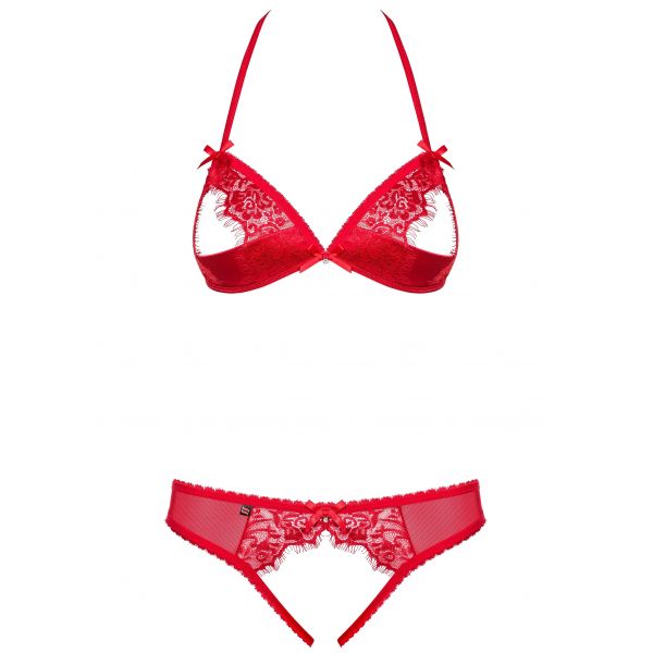 Комплект насыщенно красного цвета состоит из открытого бюстгальтера и трусиков открытой промежностью - мы от них без ума!