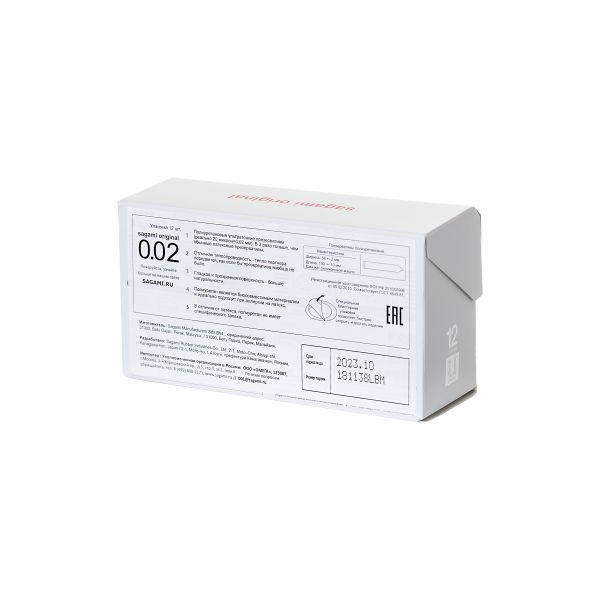 * Самые прочные презервативы в мире. Благодаря использованию полиуретана, презервативы SAGAMI ORIGINAL в 2 раза прочнее на растяжение и в 3 раза - на объемное расширение.