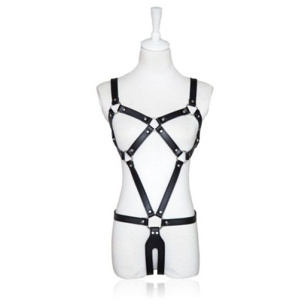 Кожаная сбруя по форме напоминает удобное сексуальное боди.Стильные ремешки красиво оплетают обнаженное тело, придавая ему еще большую сексуальность и возбуждая особенную страсть.