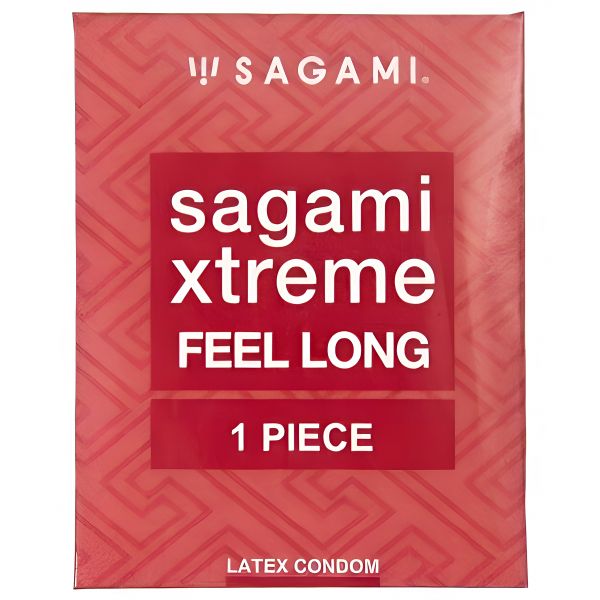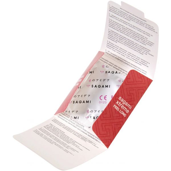 Sagami Xtreme Feel Long – усиленная толщина стенок (0,09 мм) этих латексных презервативов позволяет увеличить продолжительность полового акта без добавления в смазку анестетиков, а точечная текстура и облегающая форма усилить наслаждение второго партнера.