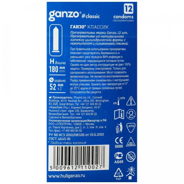 Презервативы Ganzo №12 Classic классические с обильной смазкой