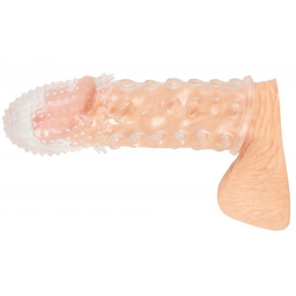Прозрачная насадка на пенис с точечно-ребристым рельефом Crystal Clear