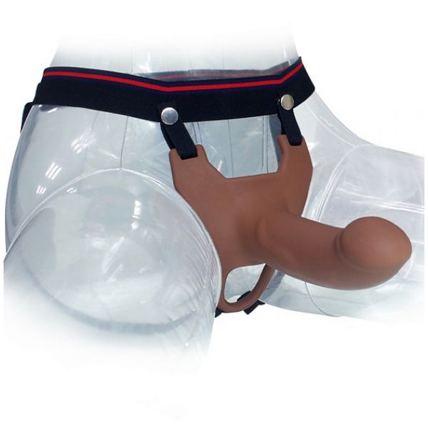 Пустотелый фаллопротез коричневого цвета с регулируемыми ремешками - позвольте себе не сомневаться в своих силах!
