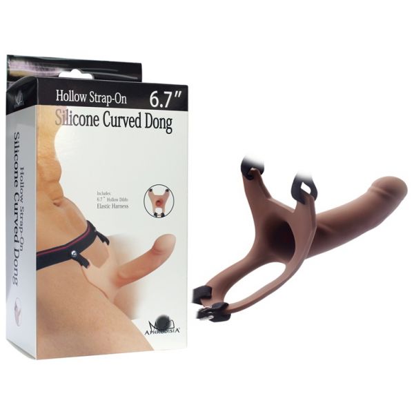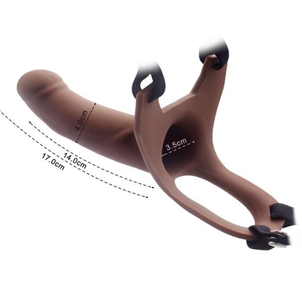 Пустотелый фаллопротез коричневого цвета с регулируемыми ремешками - позвольте себе не сомневаться в своих силах!