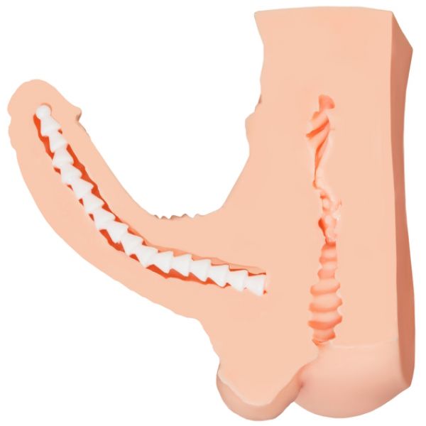 Кроме того, торс имеет анальное отверстие. Внутри отверстия Вас ждет потрясающий рельеф в виде различных выпуклостей, шариков и гребешков, предназначенных для более интенсивной стимуляции члена во время использования.