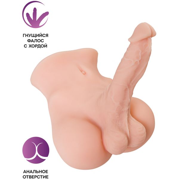 Реалистичный фаллос-торс с анальным отверстием Juicy Pussy Manuel 19 см