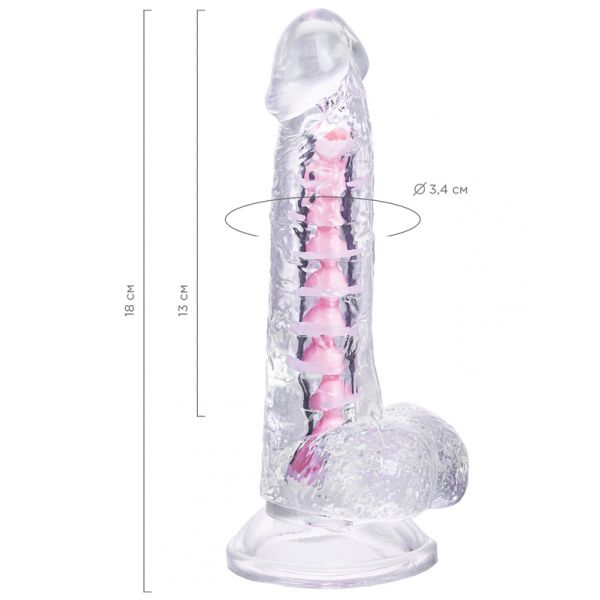 Особенность секс-игрушки – наличие гибкой фиксирующейся внутренней конструкции, которая, благодаря материалу исполнения, отлично просматривается.