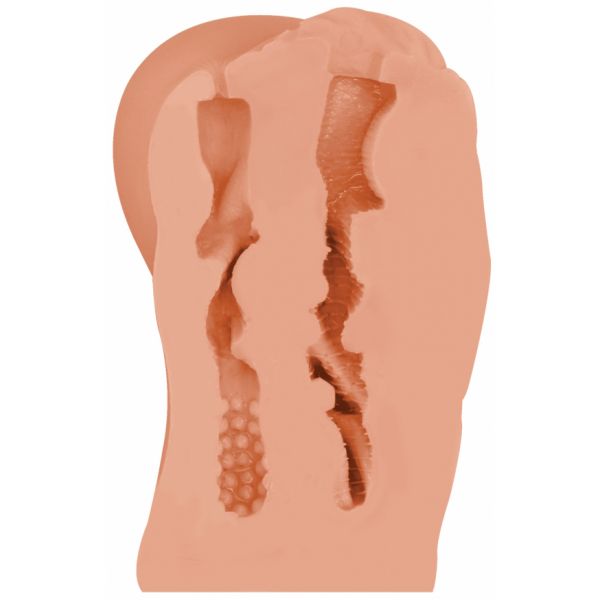 Он выполнен в виде двух любовных отверстий: женской вагины и узенького ануса.