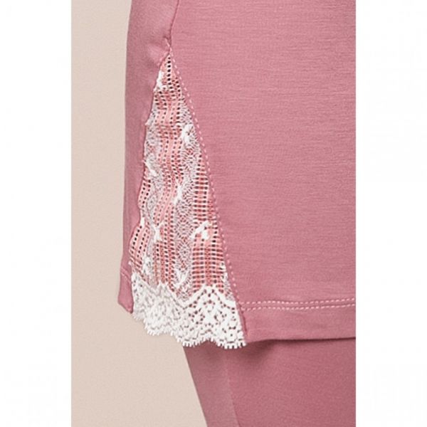 Ночная пижама от известного польского бренда Passion, выполненная из мягкой вискозы розового цвета, отделанная изысканным итальянским кружевом.