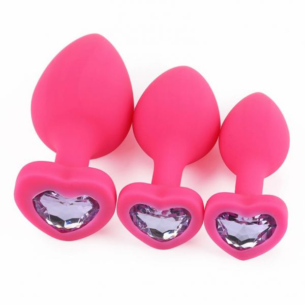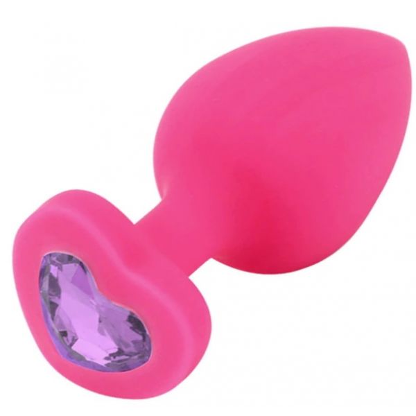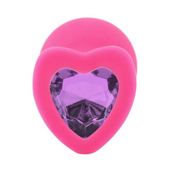 Розовая силиконовая пробка с кристаллом в форме сердца M сиреневый