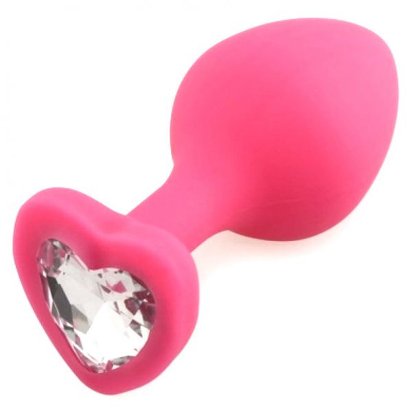 Розовая силиконовая пробка с кристаллом в форме сердца S прозрачный