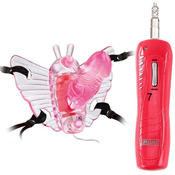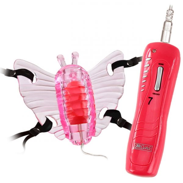 Розовая вибробабочка на ремешках Butterfly Mini с проводным пультом