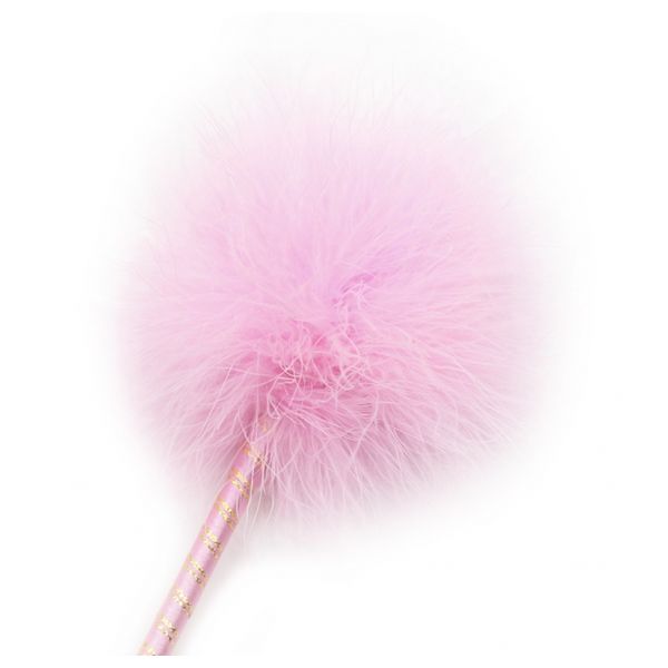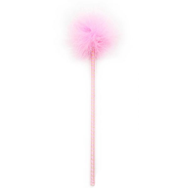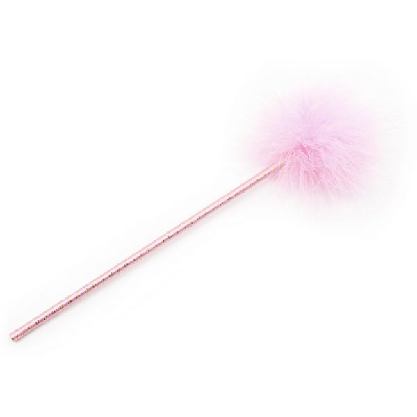 Розовый перьевой тиклер с атласной ручкой 34 см