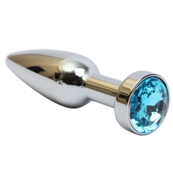 Серебряная металлическая анальная пробка с голубым стразом, размер S
