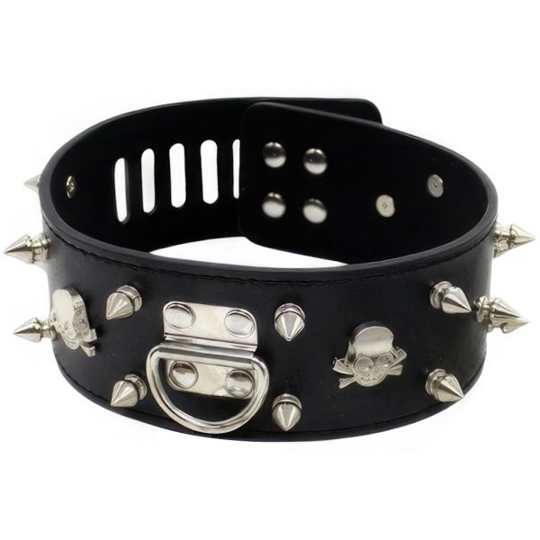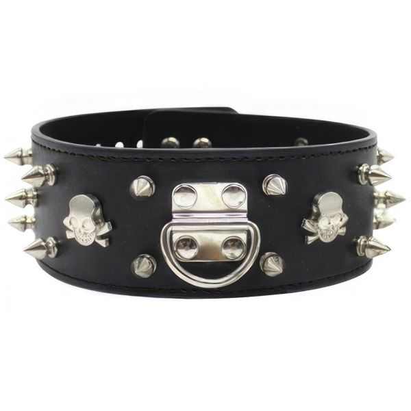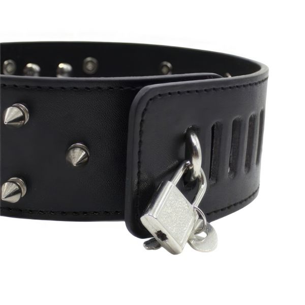 Широкий черный ошейник с шипами