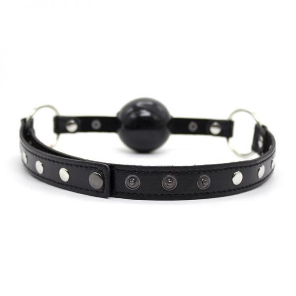 Кляп-шар имеет универсальный размер, который удобно регулируется при помощи заклепок.