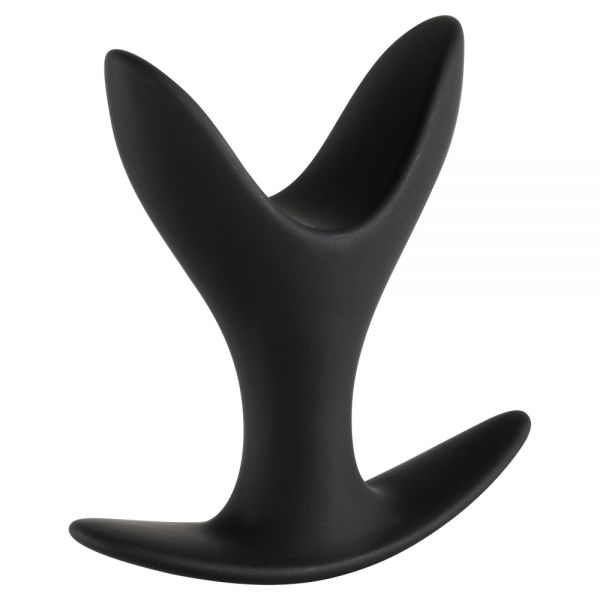 Силиконовый анальный эспандер выполнен в виде двух лепестков, которые нужно собрать вместе при введении и которые раскрываются внутри.
