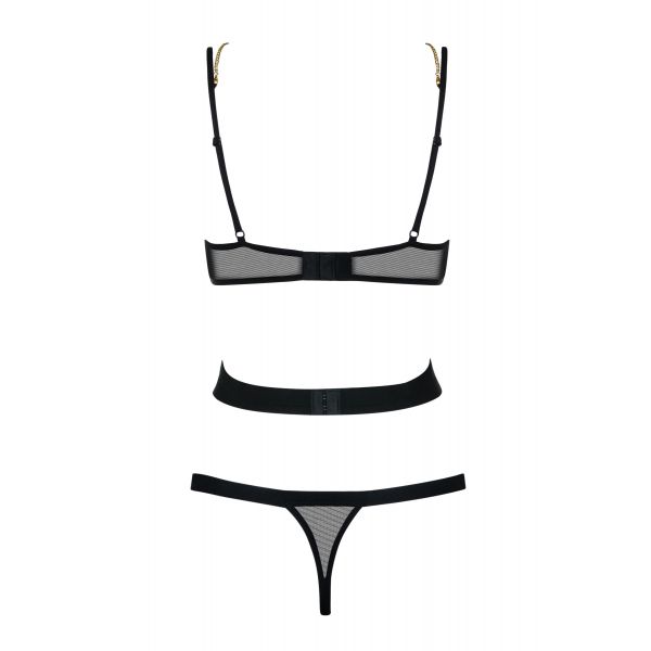 Детали: эластичные ленты-резинки, подчеркивающие форму тела, чашки на косточках - идеальный бюст, регулируемые лямки - комфортная посадка, соответствующие резинки на талии и на животе, цепочка - идеальная деталь (не содержит никель), деликатные ткани и резинки.