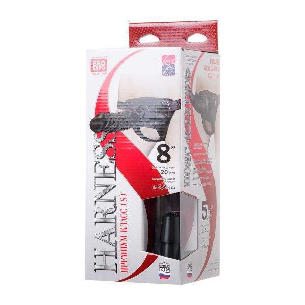 Страпон LoveToy с поясом Harness с 2 насадками, PVC, чёрный, 20 см