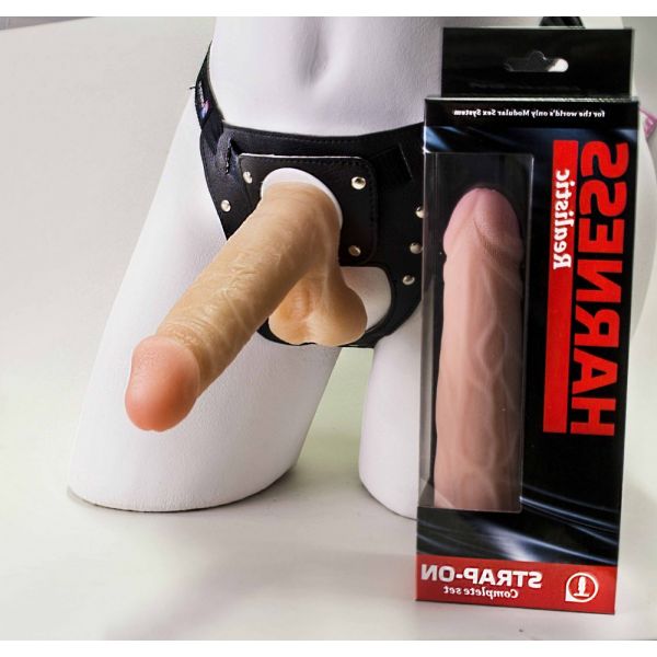 Страпон с мошонкой с поясом Harness из ПВХ 14 см, телесный