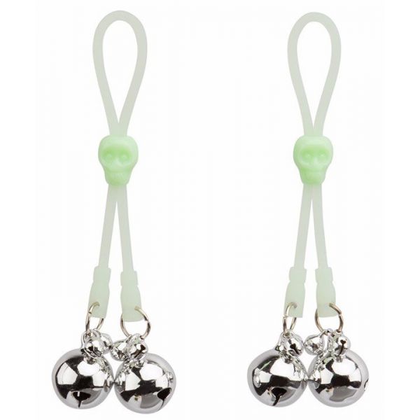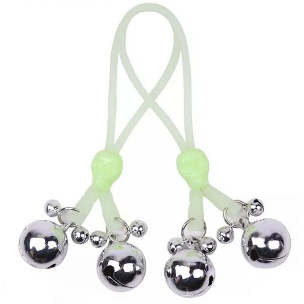 Светящиеся в темноте лассо для сосков с серебряными бубенчиками