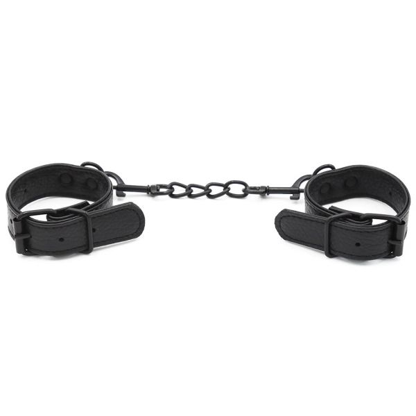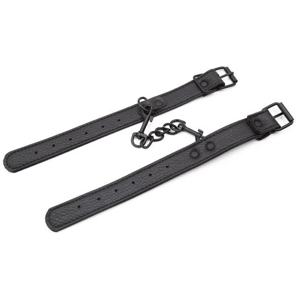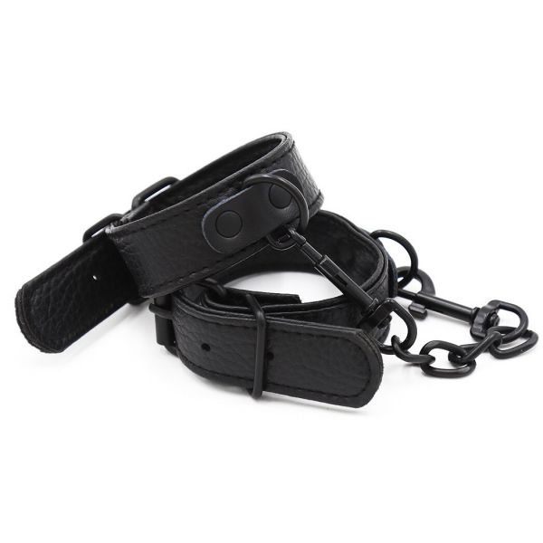 Металлическая фурнитура обеспечивает качественную фиксацию. Наручники соединяются между собой цепью с карабинами, благодаря чему обеспечивается достаточно жесткая сцепка.