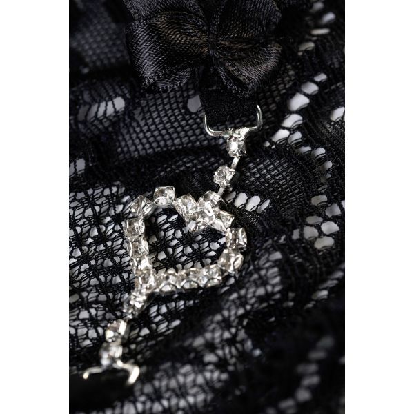 Элегантные кружевные трусики с изящной деталью на одной из лямок - подчеркнет вашу индивидуальность. Тонкие, мягкие лямочки и хлопковая ластовица обеспечат комфортные ощущения. Ниспадающие нити из страз создают сексуальный и игривый образ.