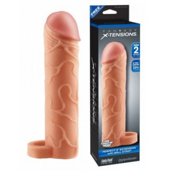 Удлиняющая насадка Fantasy X-tensions Perfect 2" Extension with Ball Strap телесного цвета сделает Вас искусным любовником!