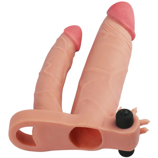 Удлиняющая вибронасадка для двойного проникновения Pleasure X Tender Vibrating Double Penis Sleeve + 3 см